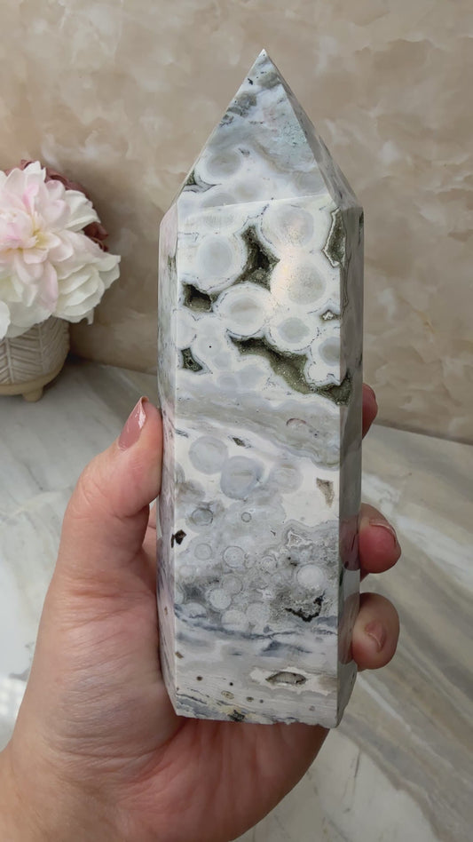 Druzy Orbicular Ocean Jasper Tower