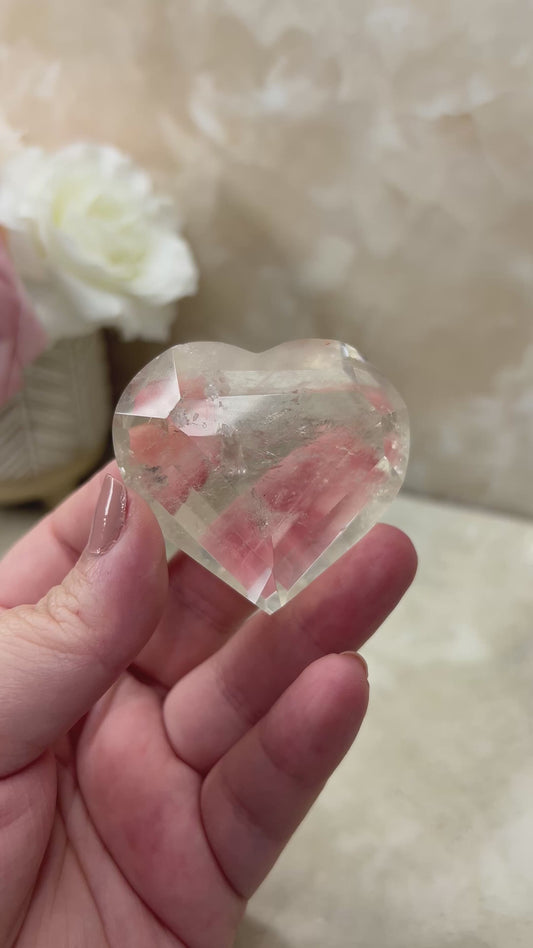 Faceted Clear Quartz Heart with Chlorite from Brazil