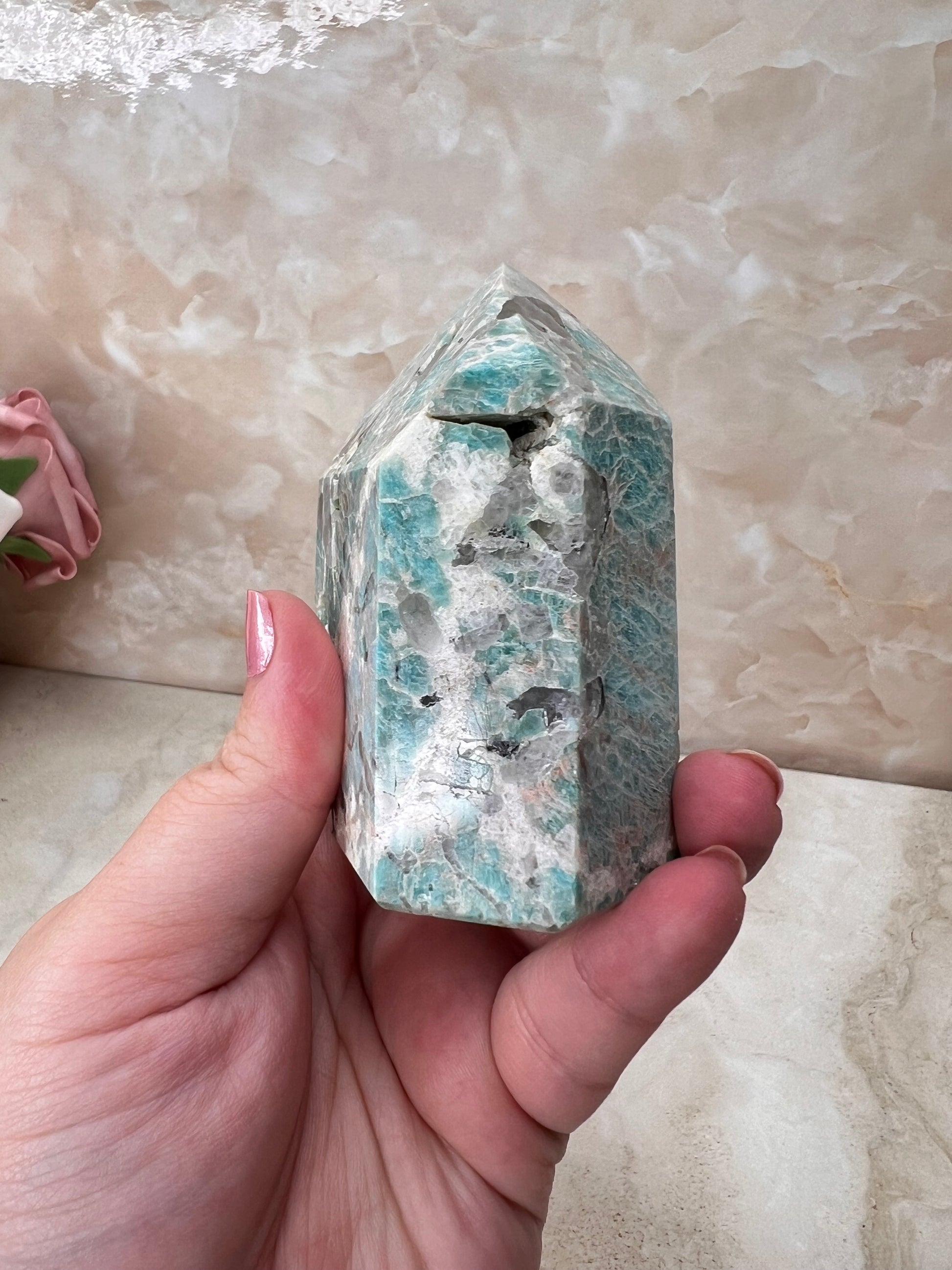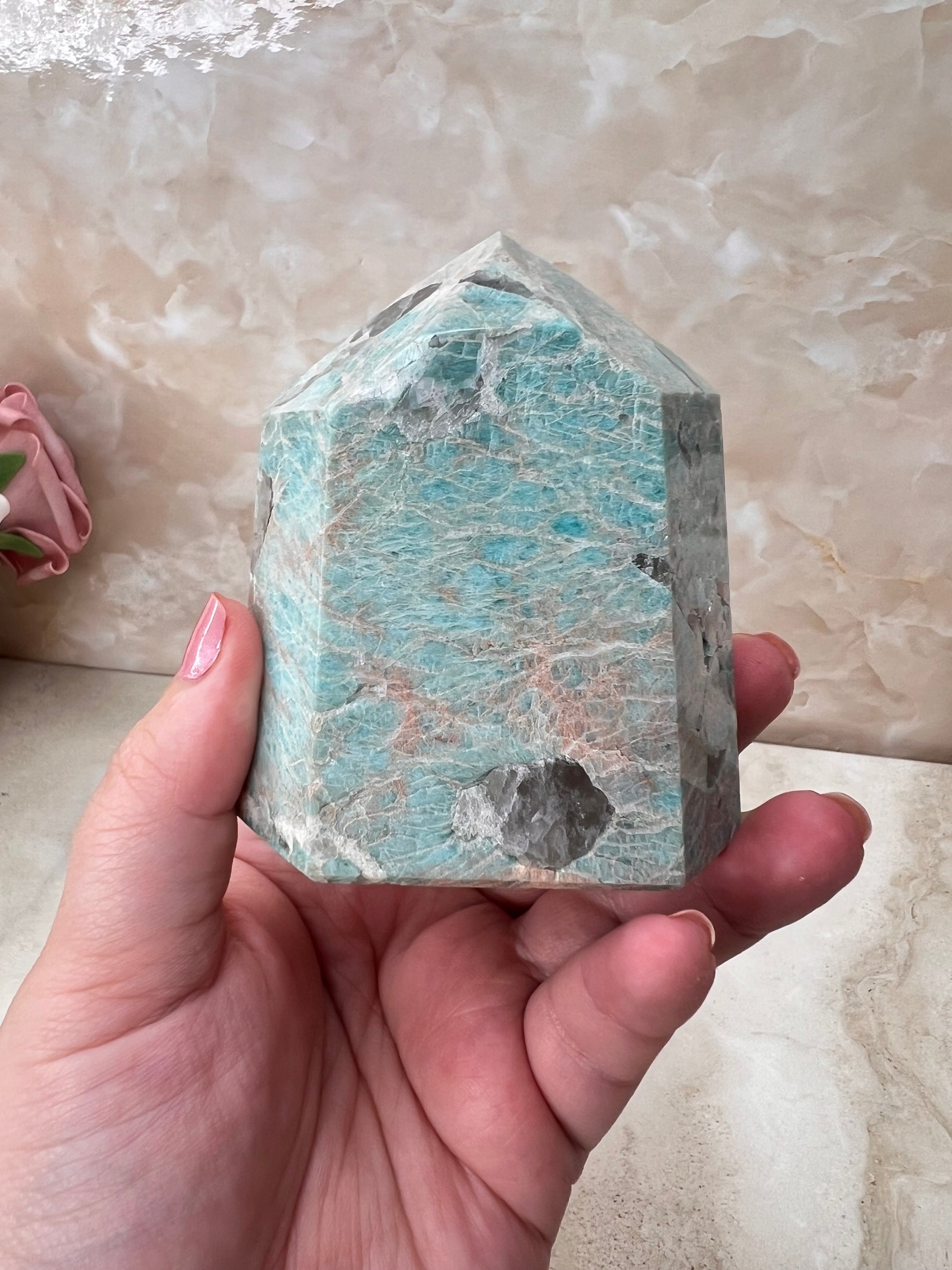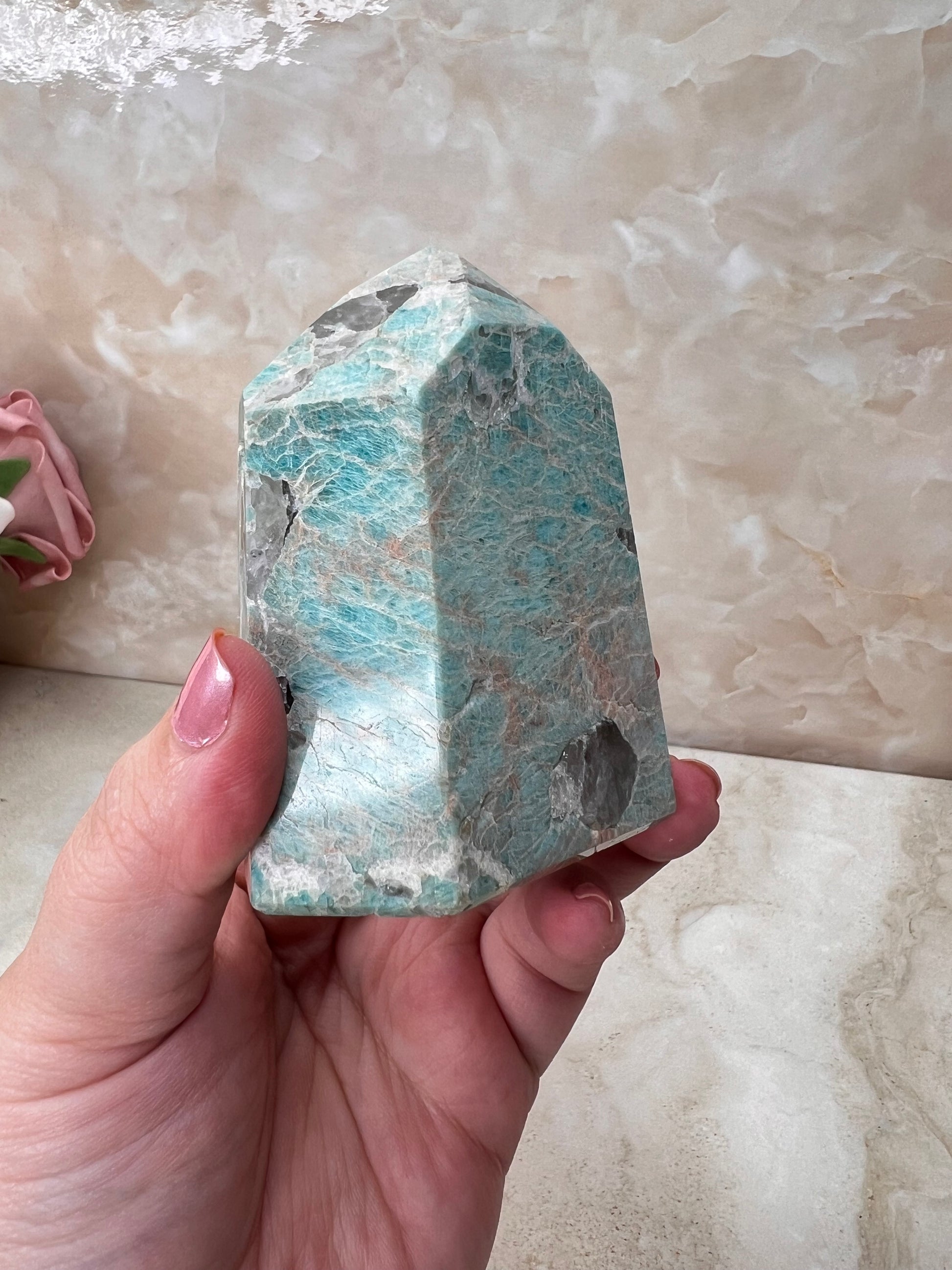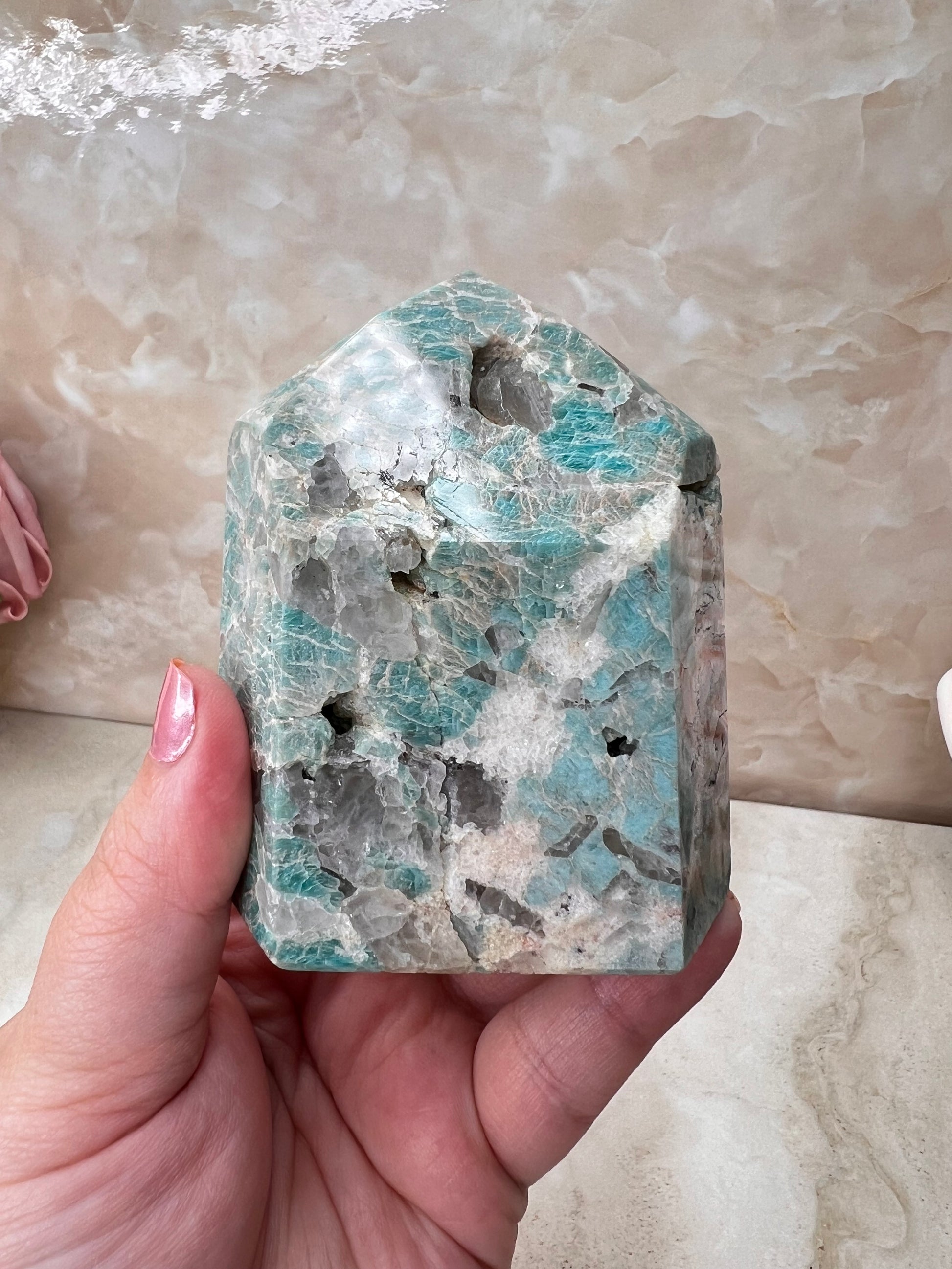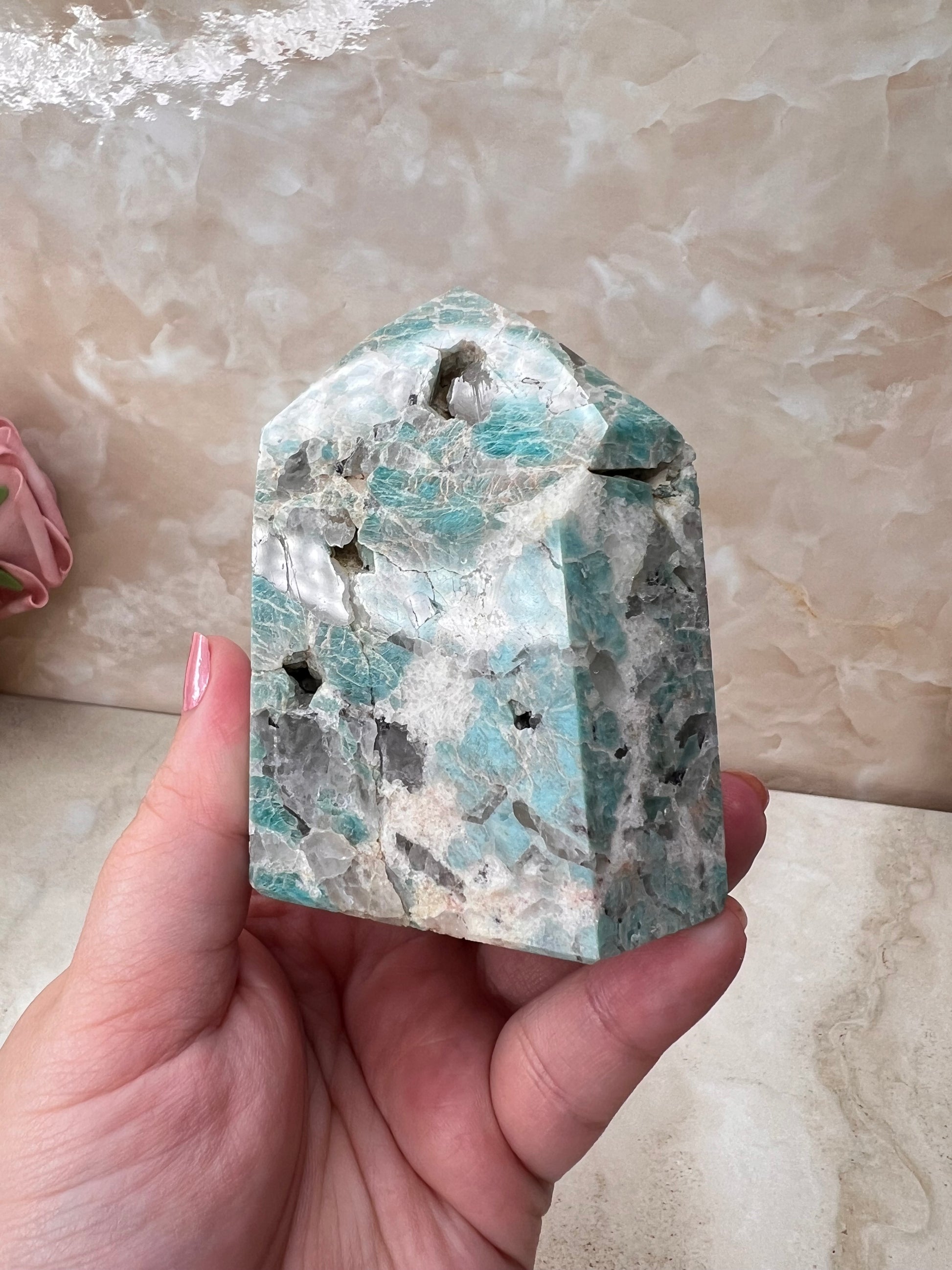 Amazonite & Smokey Quartz Tower