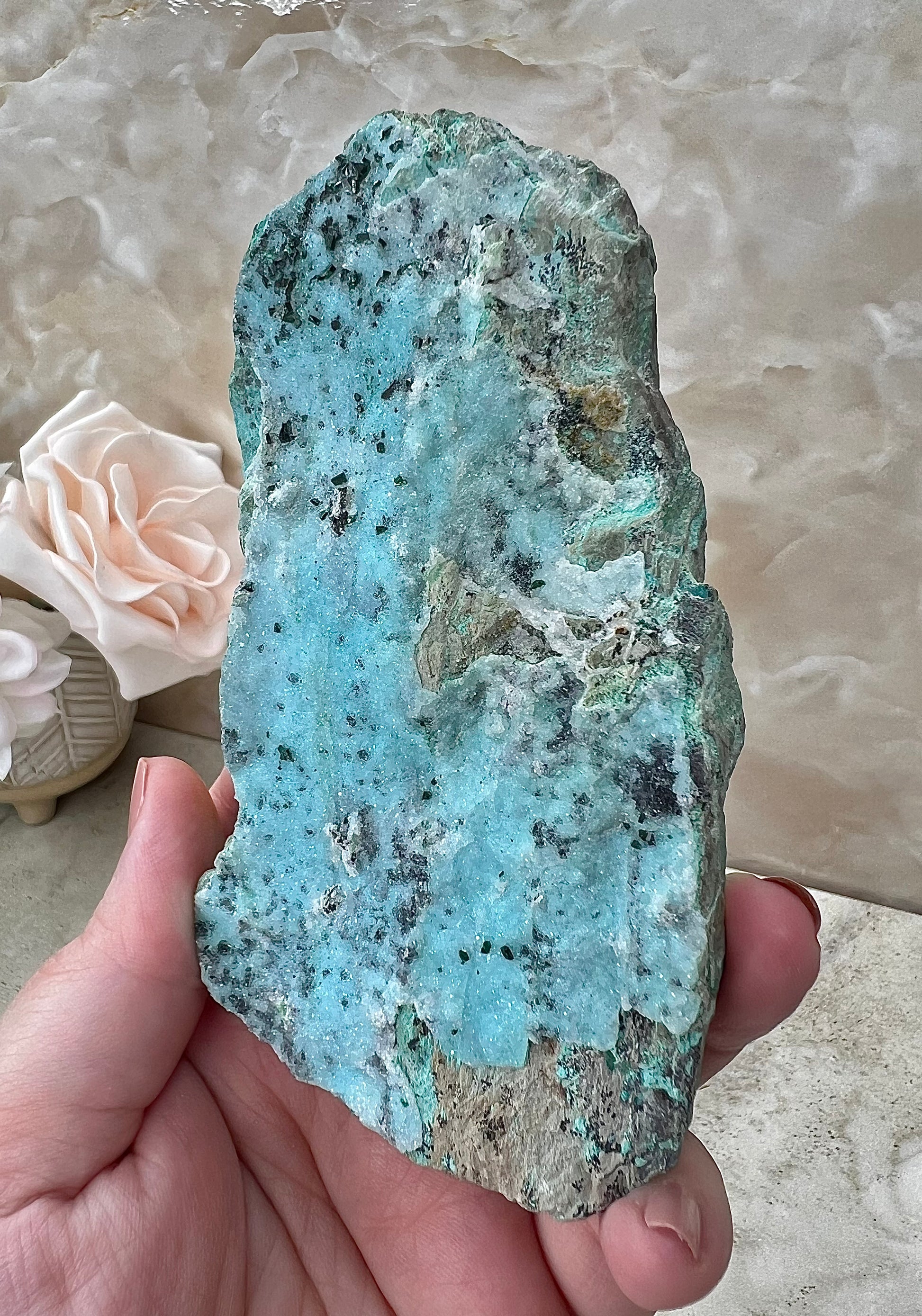 Chrysocolla, Malachite and Druzy Quartz Cluster from the Congo
