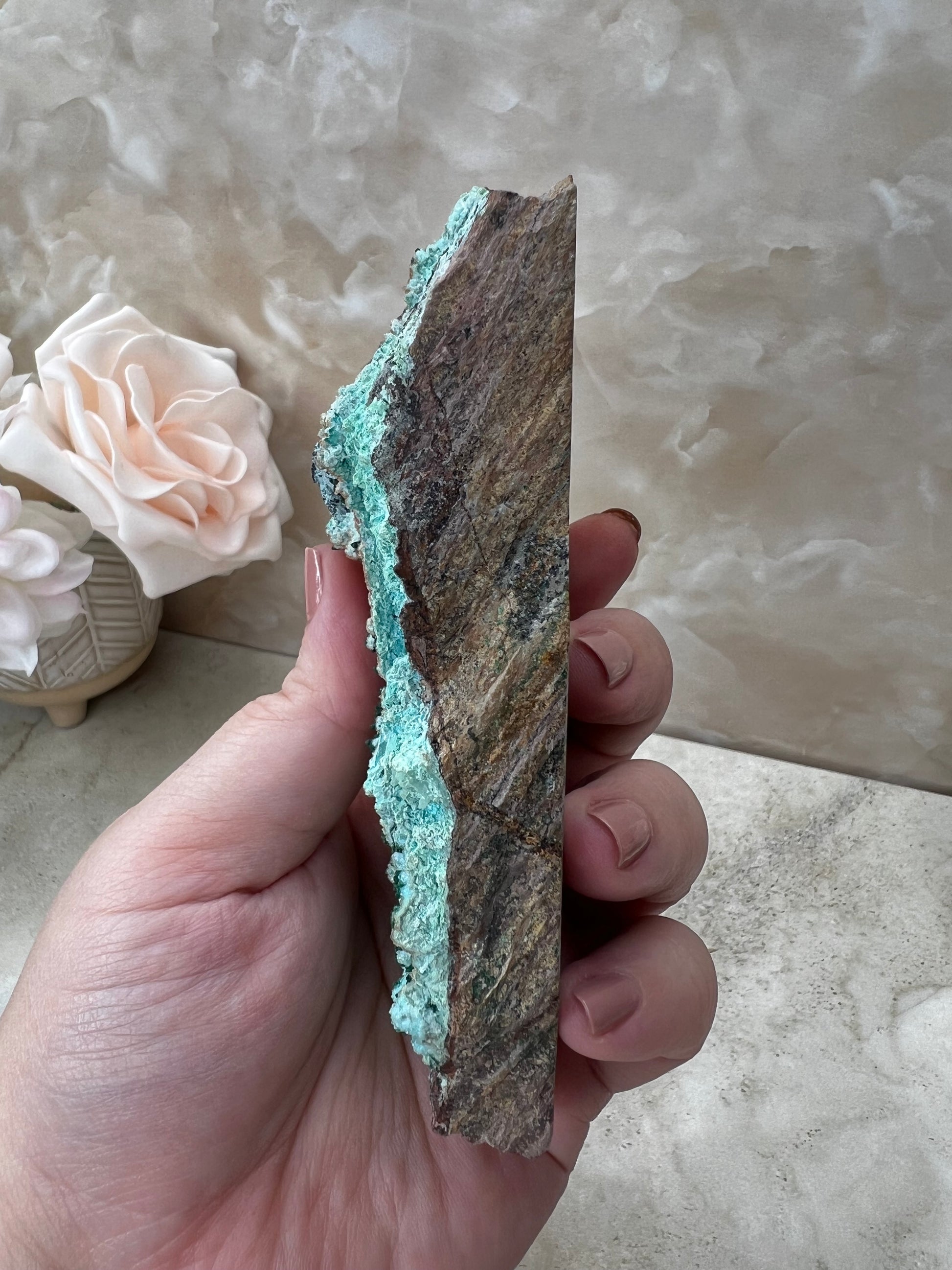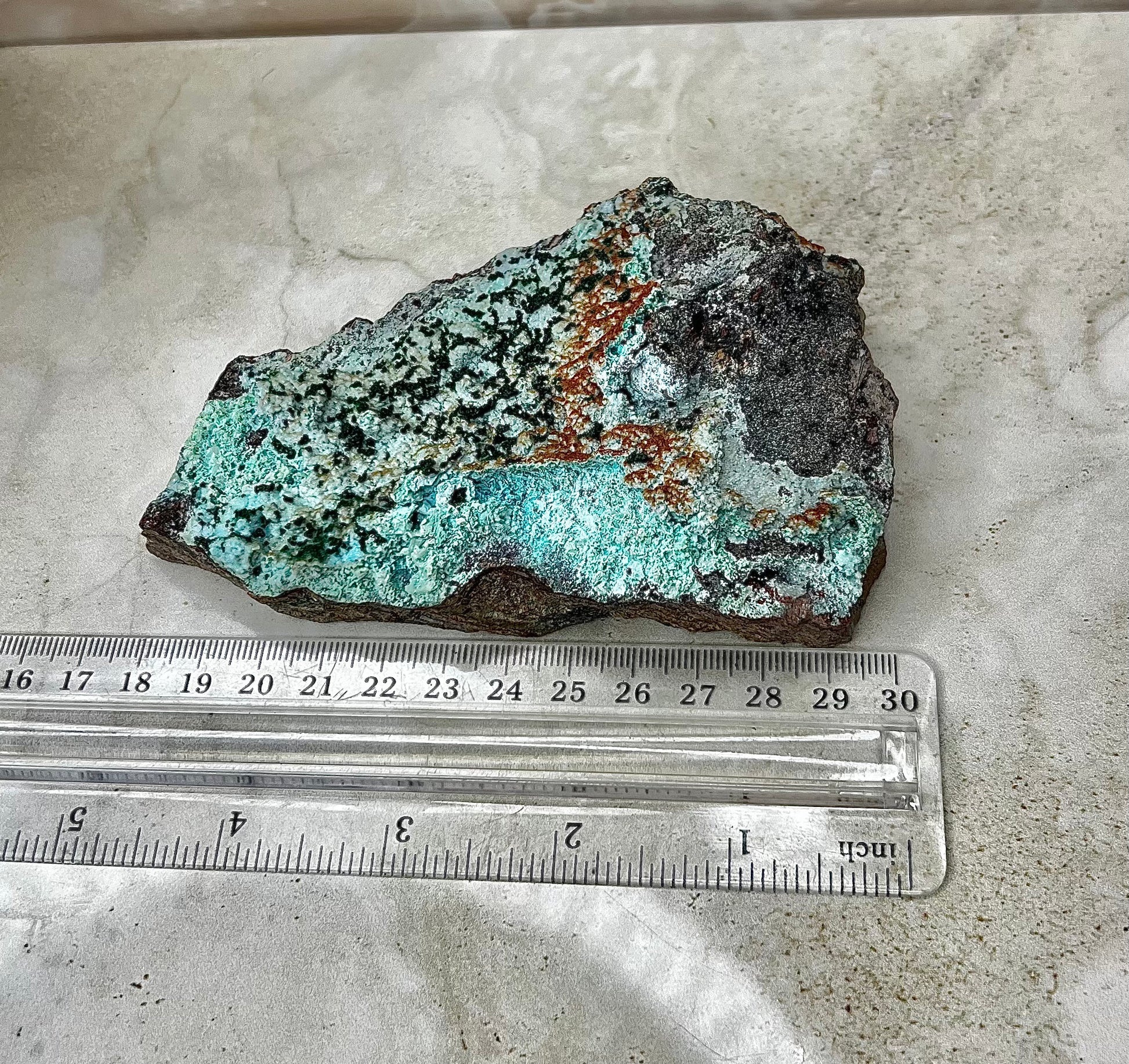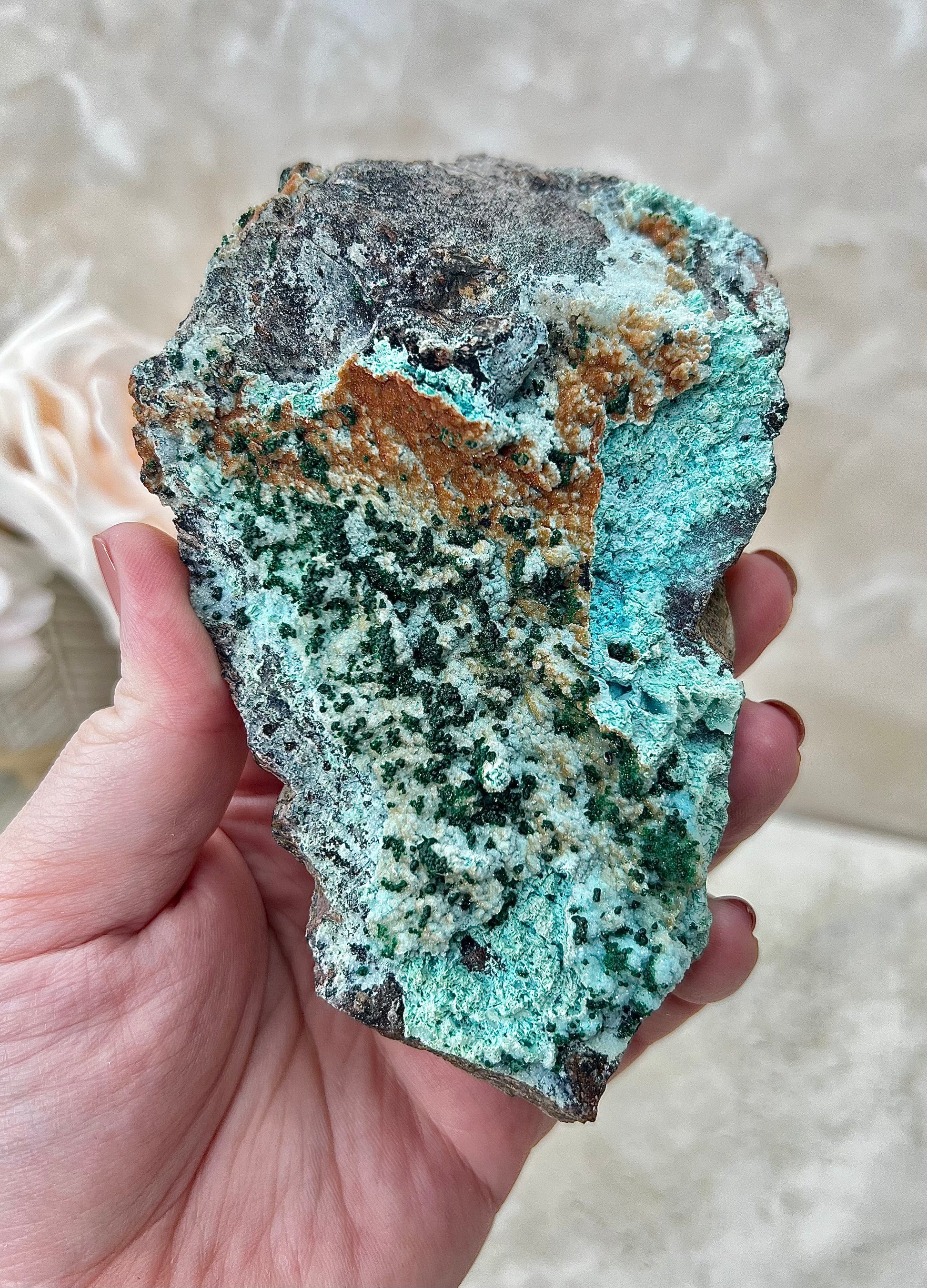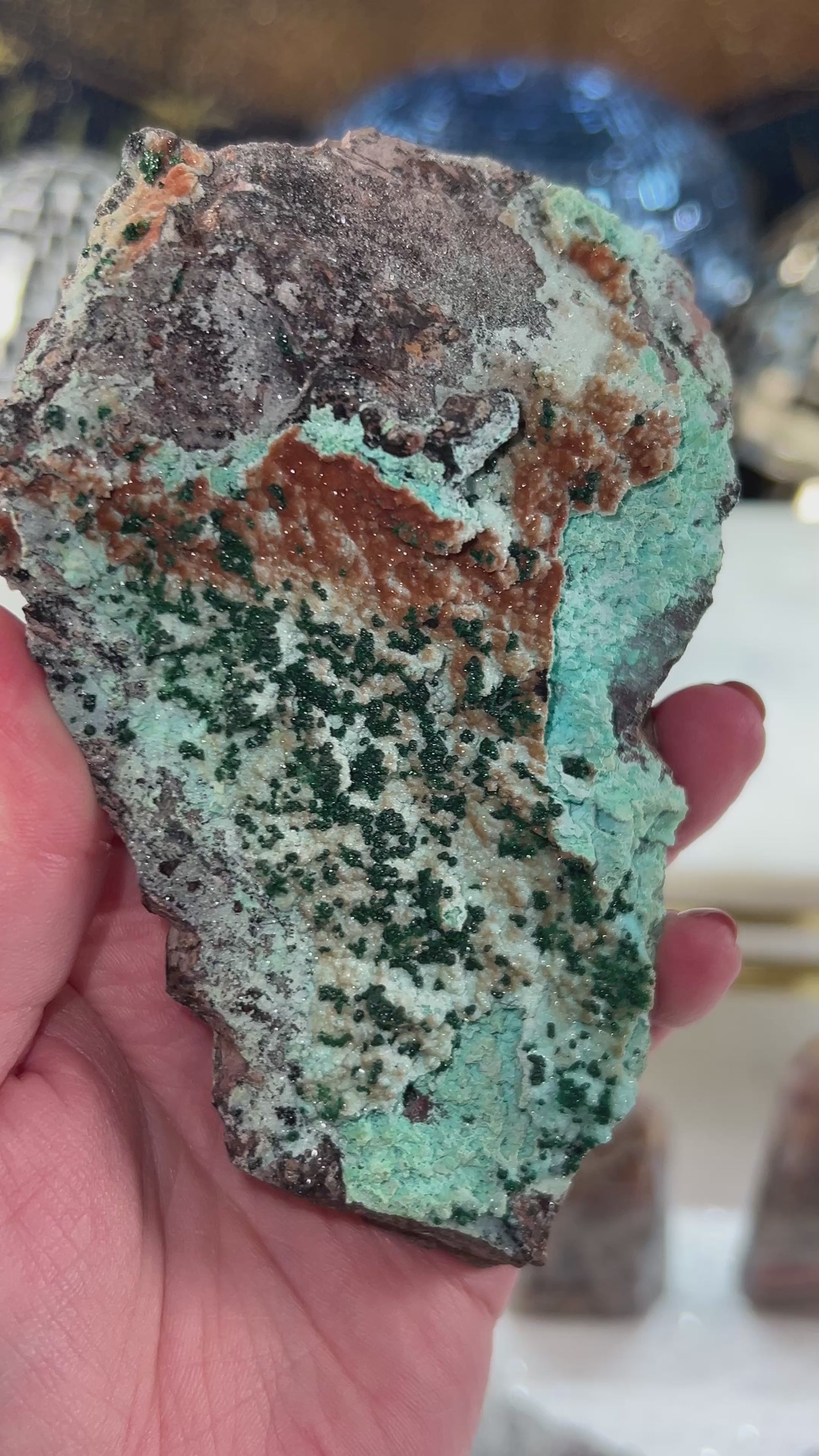 Chrysocolla, Malachite and Druzy Quartz Cluster from the Congo