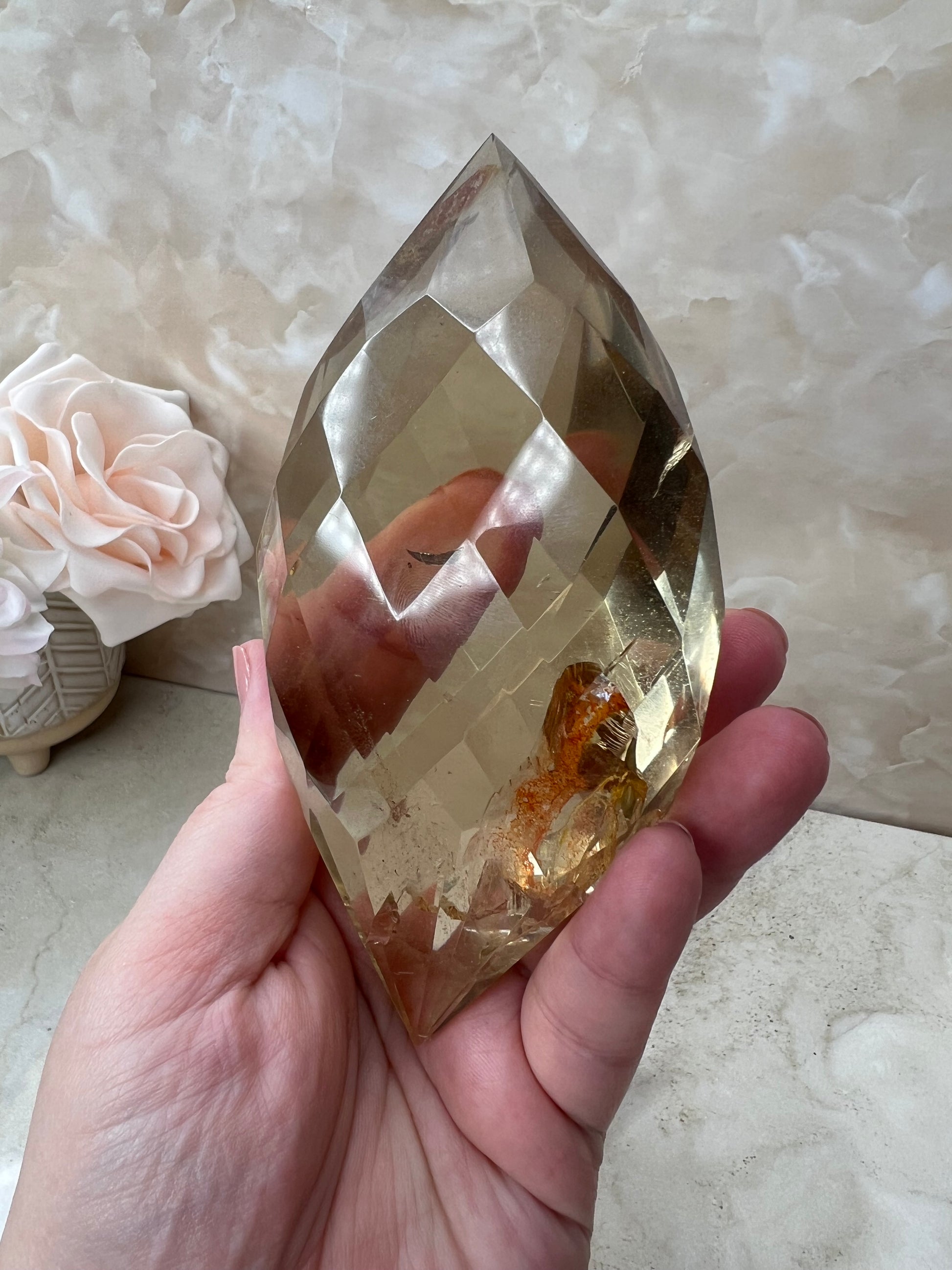 Citrine Faceted Gem Flame on Acrylic Stand