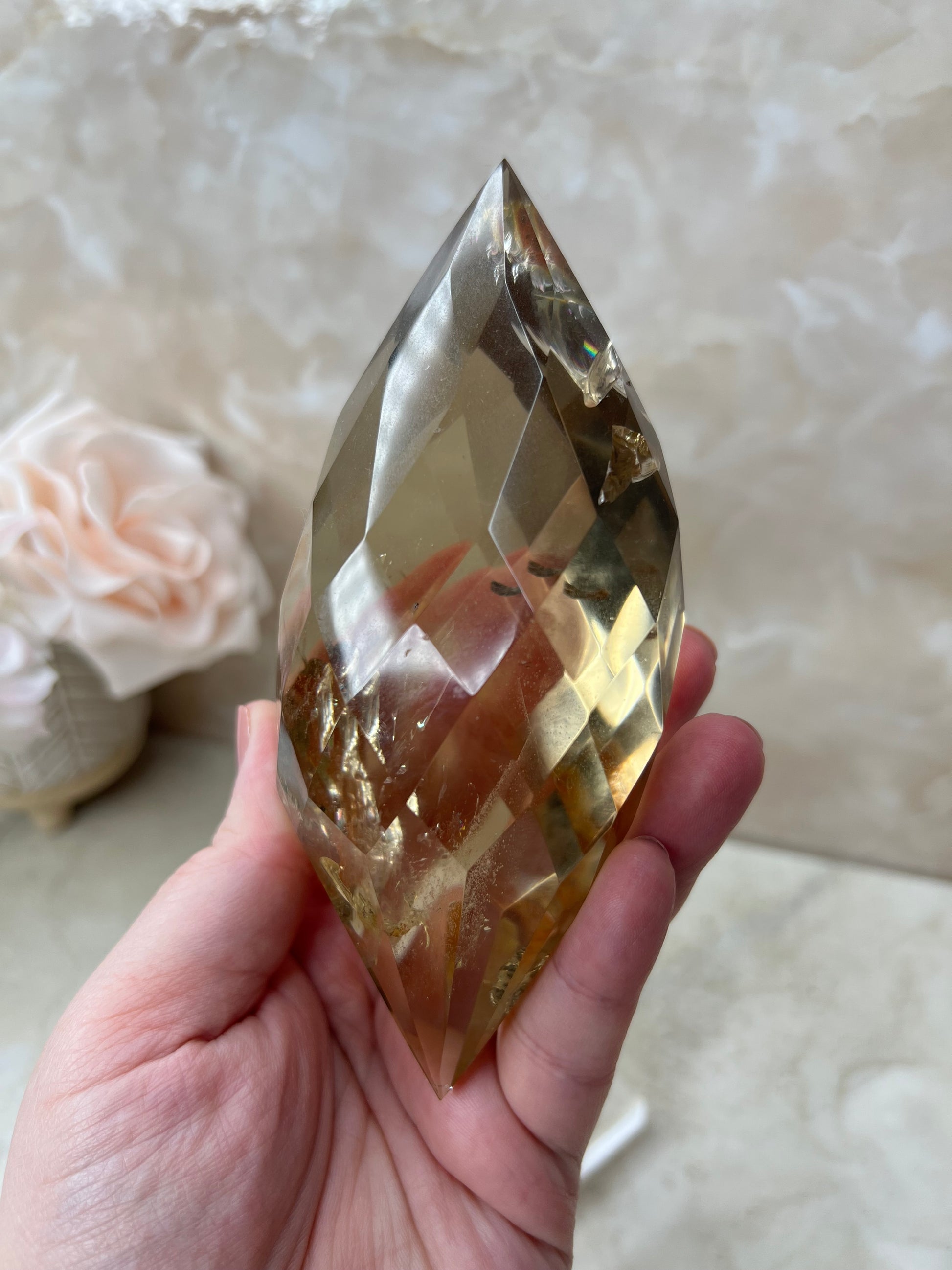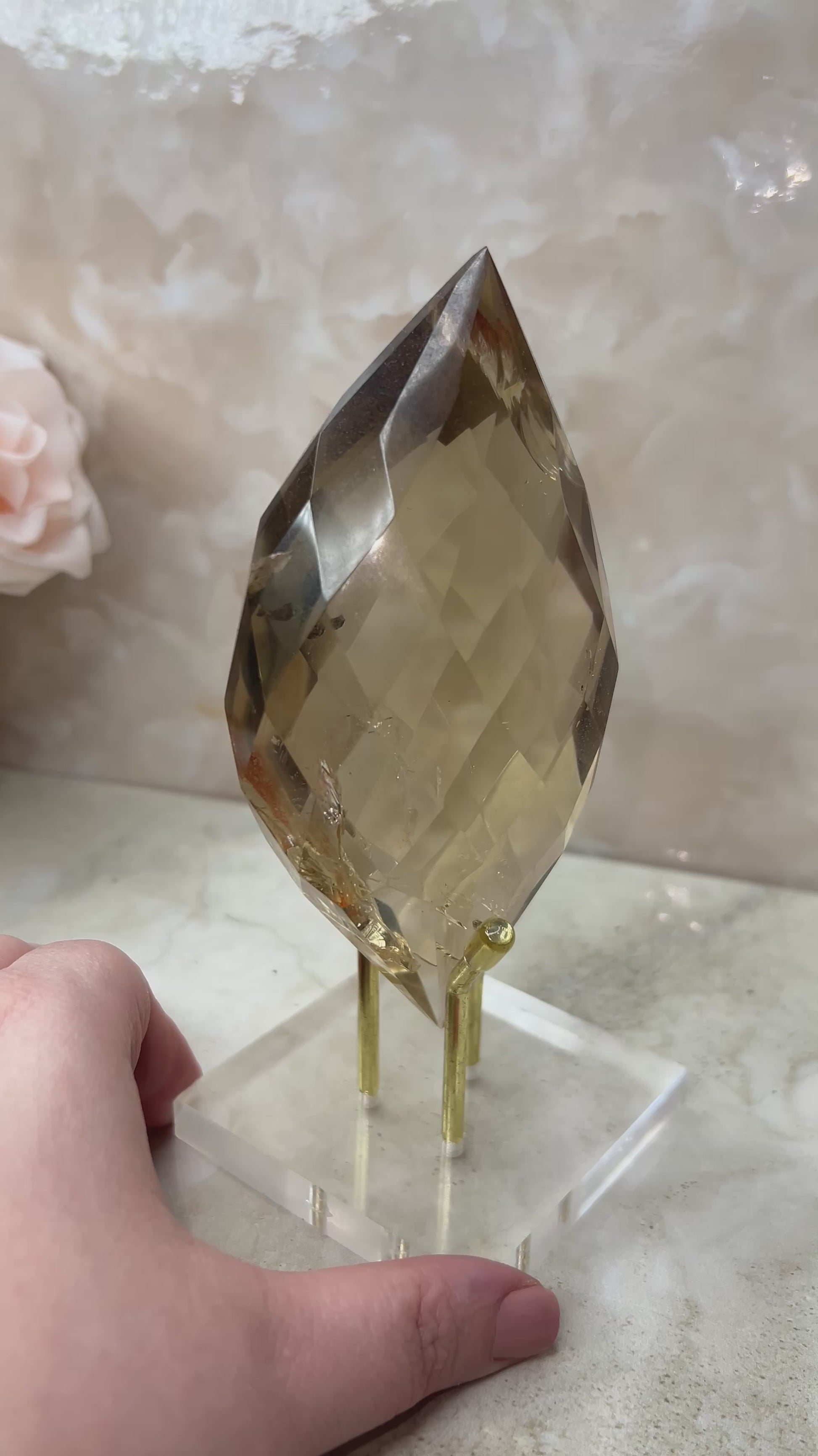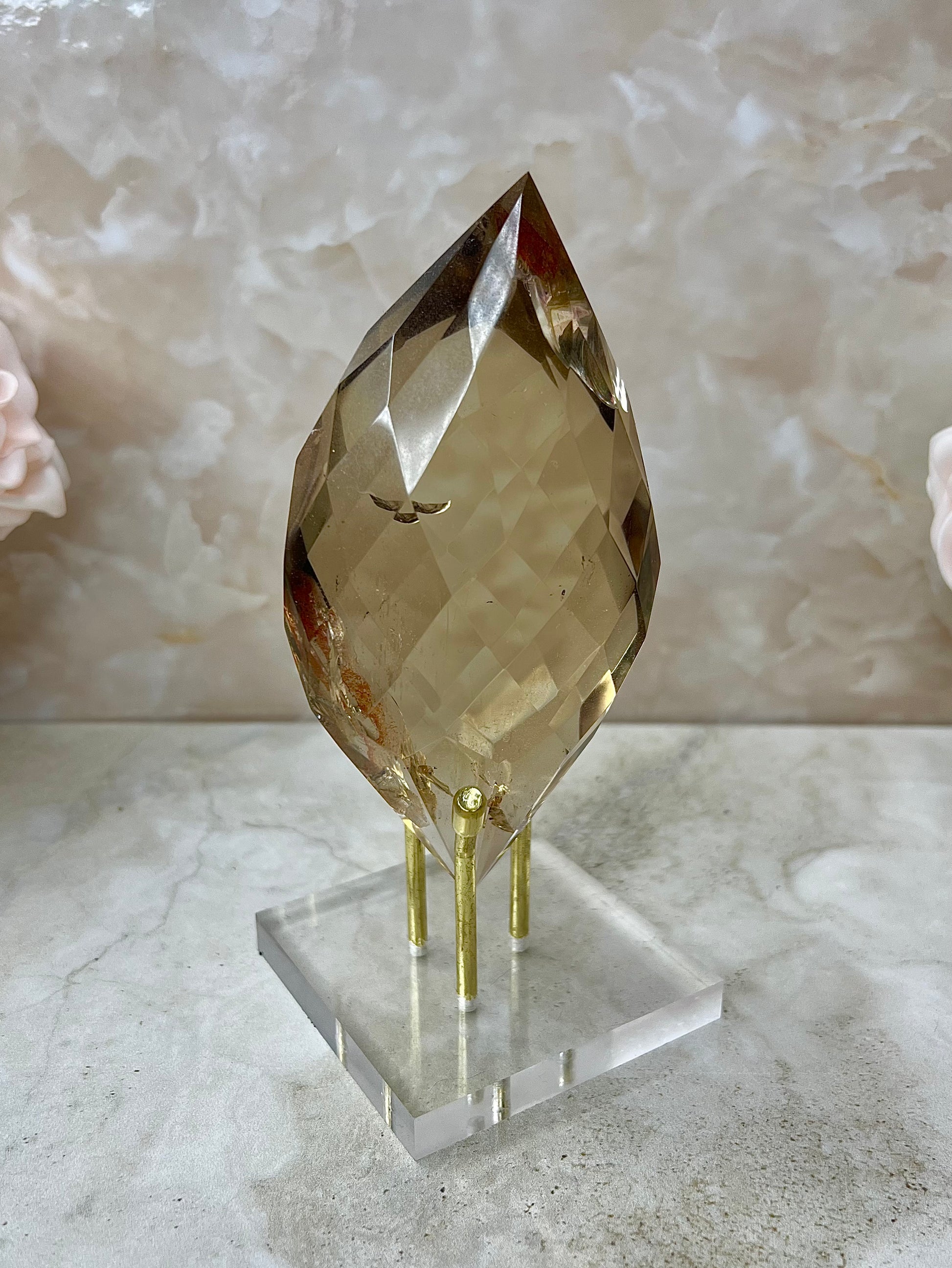 Citrine Faceted Gem Flame on Acrylic Stand From Brazil